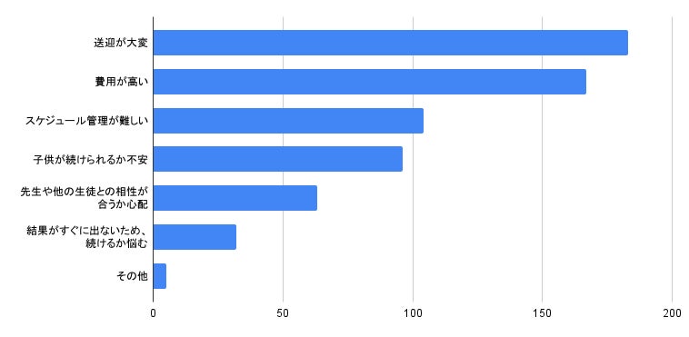 これらの結果から、習い事の選択においては、「子供が楽しく続けられること」「送迎のしやすさ」「将来の役に立つスキルの習得」 などが重視されていることが伺えます。