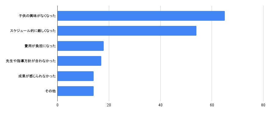 習い事を辞めた理由として「子供の興味がなくなった」が最も多い