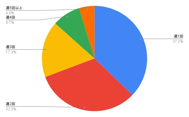習い事の頻度は、週1回が最も多い(37.2%)