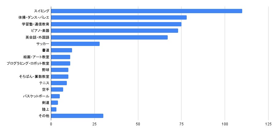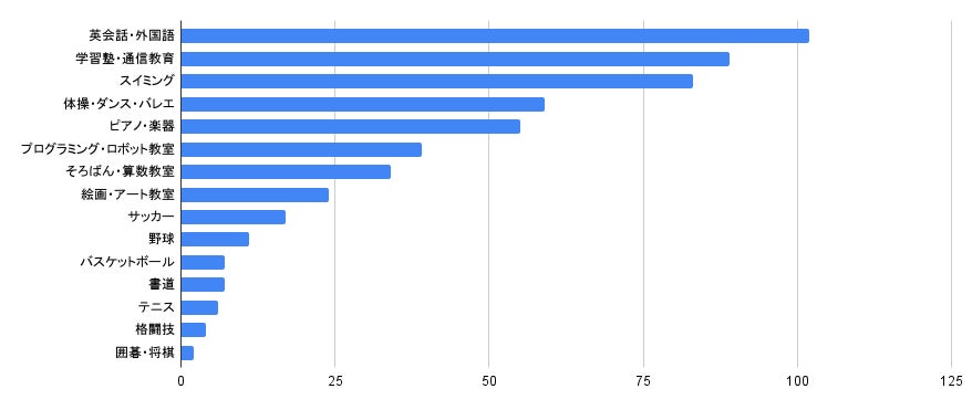 次いで、「体操・ダンス・バレエ」、「学習塾・通信教育」が続きます。
