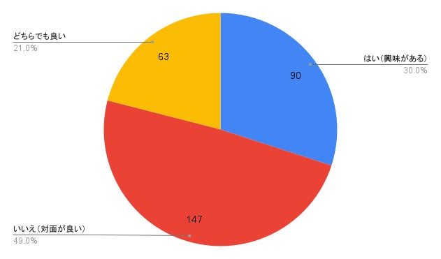 「オンラインの習い事に興味はありますか?」という質問に対して、約半数(49%)の人が「オンラインより対面の習い事が良い」と回答しました。