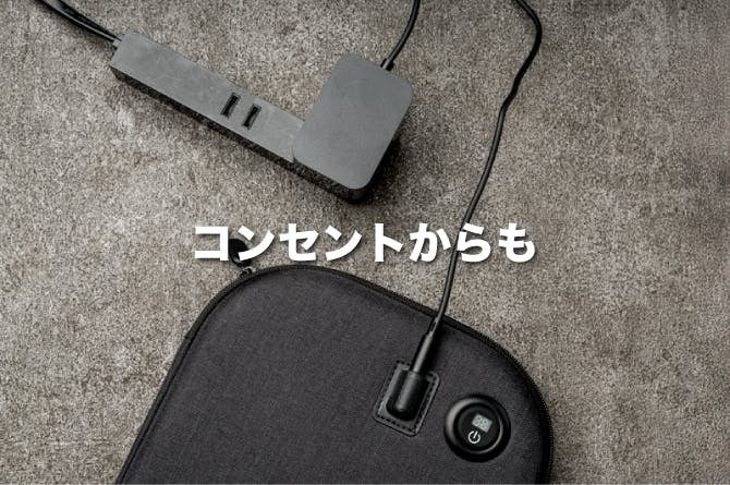 コンセント・モバイルバッテリー・カーシガーソケットと、あらゆる電源に対応。