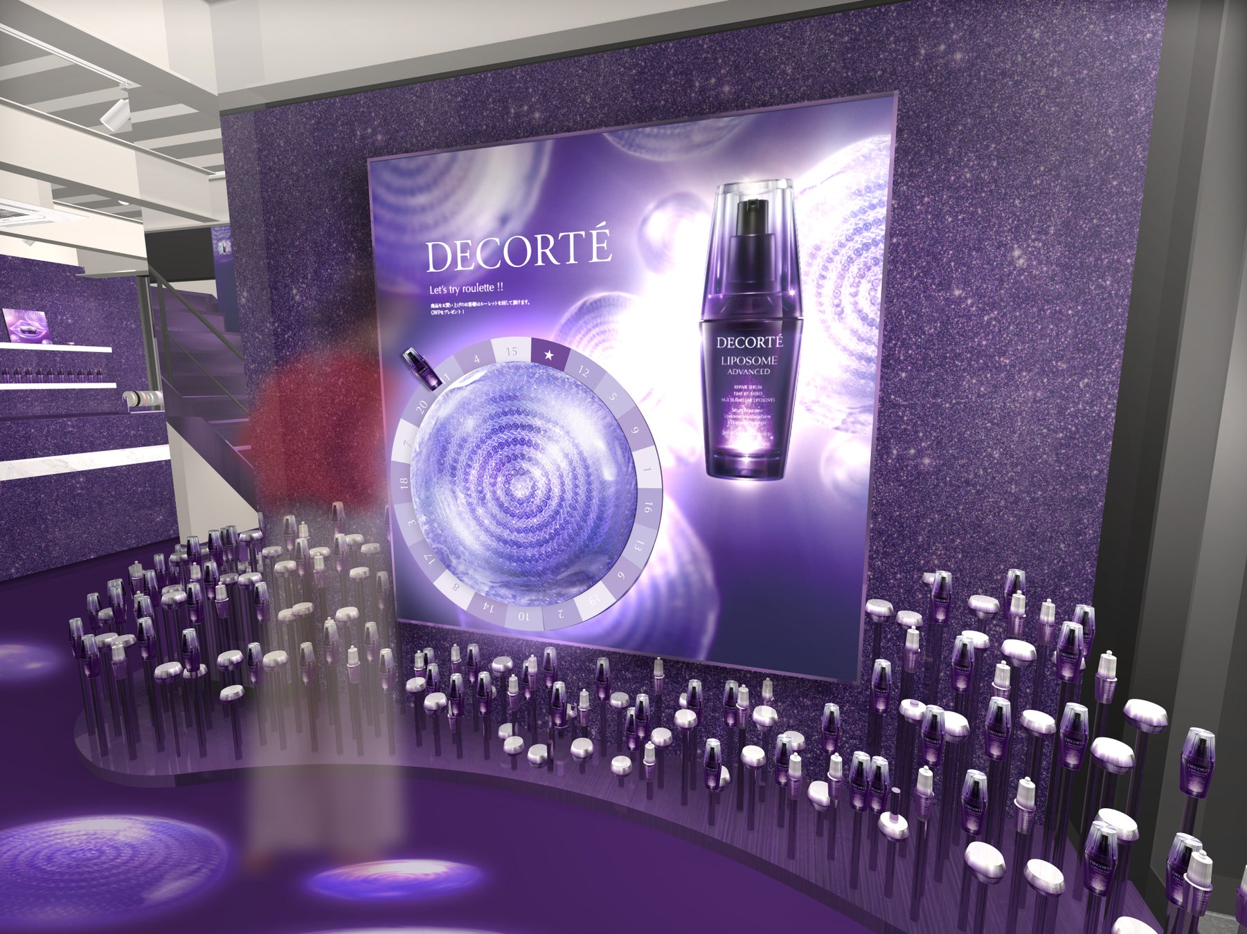 リポソームカプセル型のルーレットが登場。何のサンプルが貰えるか回してみてのお楽しみ。是⾮チャレンジを!