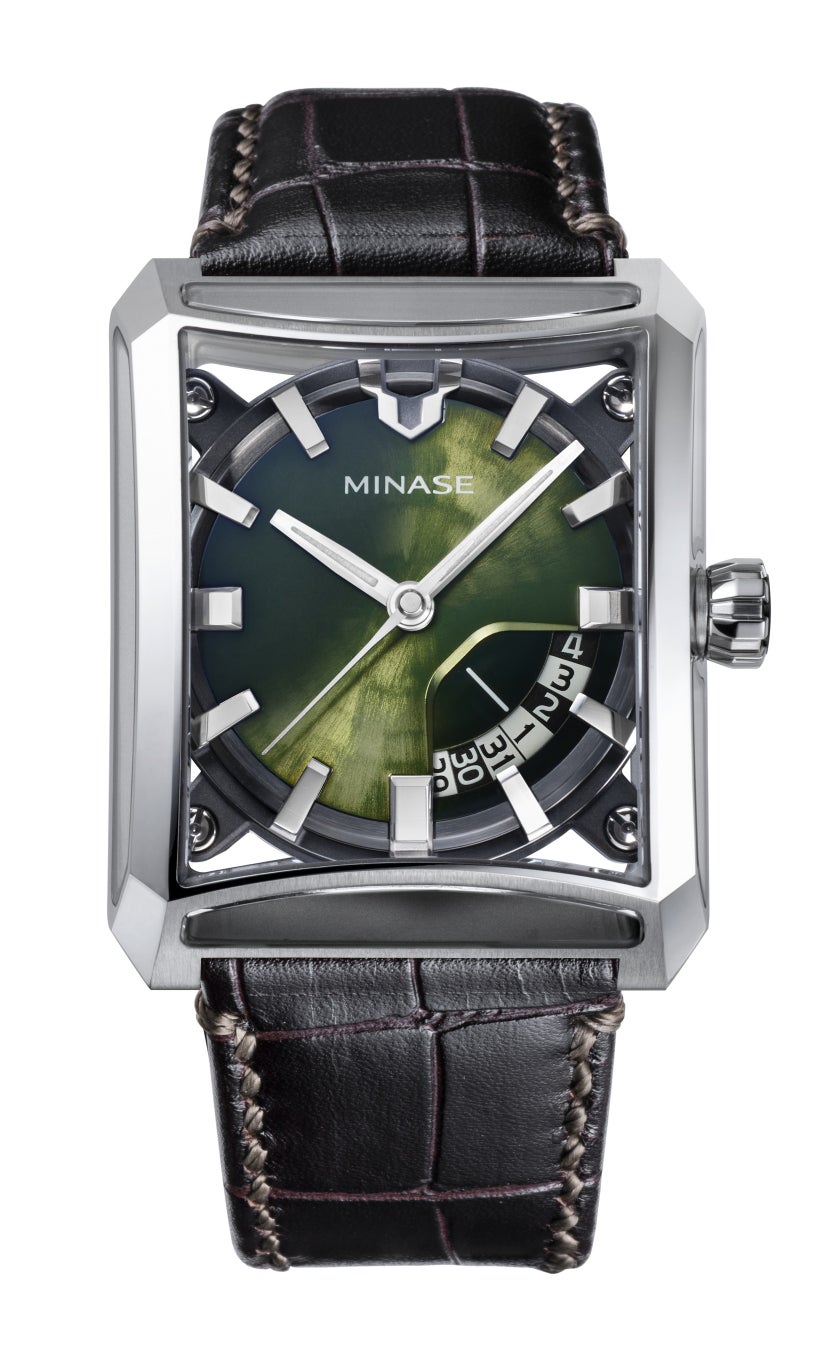 ムーブメントを保持するインナーケース、立体的な文字盤、リング上の立体的なインデックスが、宙空に浮き上がっているように見えるケースインケース構造は、まさにMINASEオリジナルの圧倒的な存在感を放ちます。
