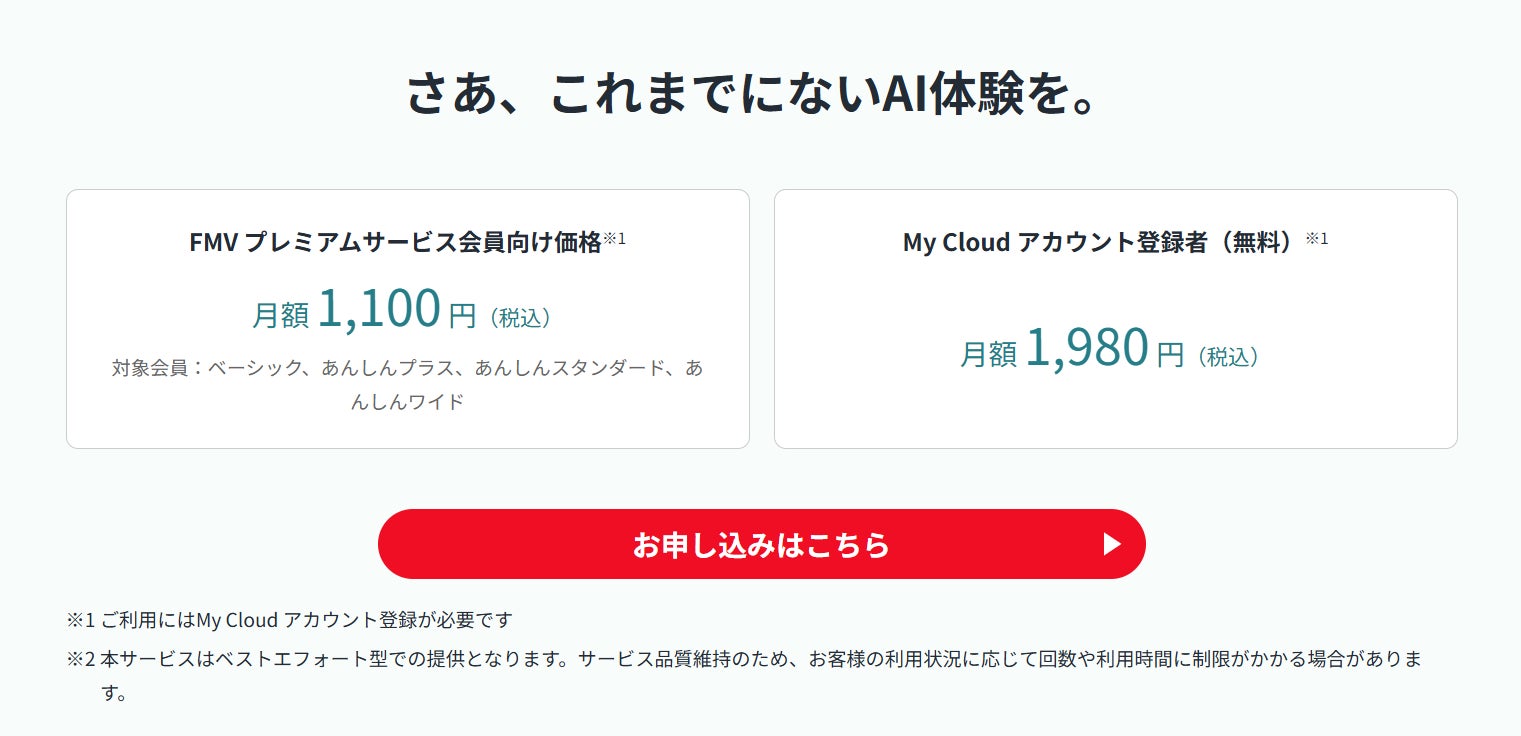 「FMV AI Plus+」は、下記よりお申し込み・ご利用いただけます。