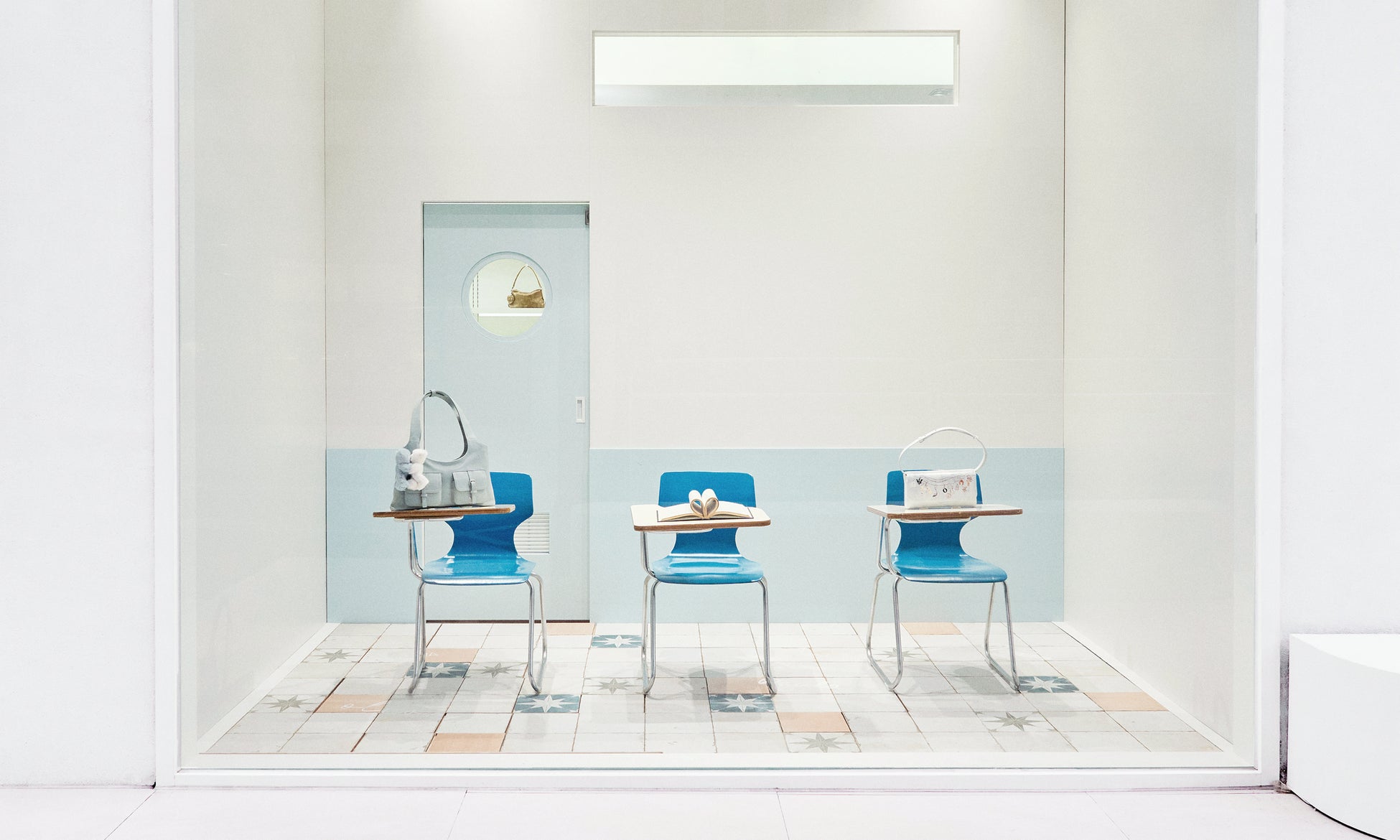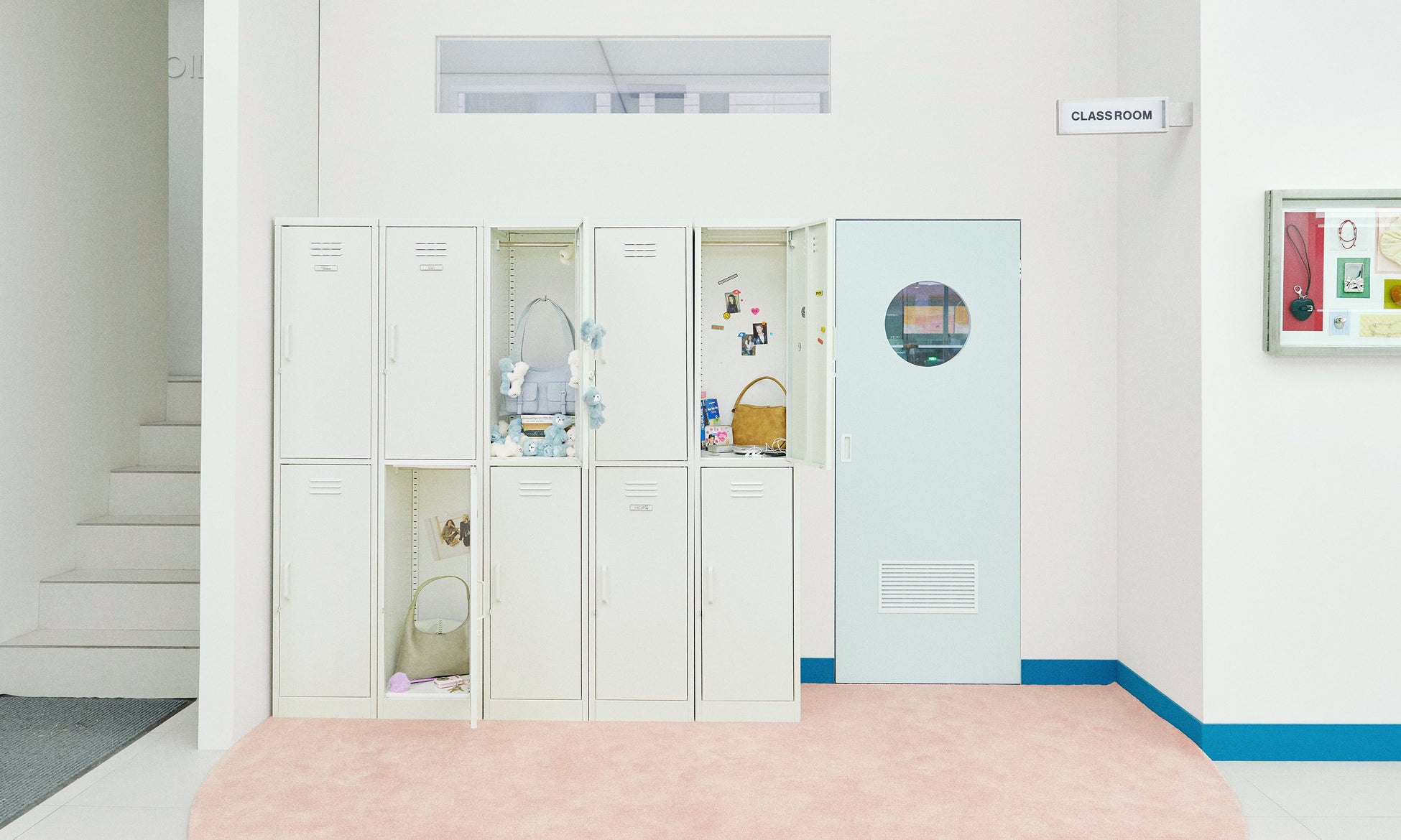 25SSのテーマである「Old School, New Memory」に基づき柔らかい色調とヴィンテージ感のあるディテールが調和し、「学校」というコンセプトに合ったシーズンゾーニングが施されています。学び舎の感性を自然に表現し、学校という馴染み深い場所で新鮮な体験をできるよう工夫されており、新たな思い出を提供することを目指しています。