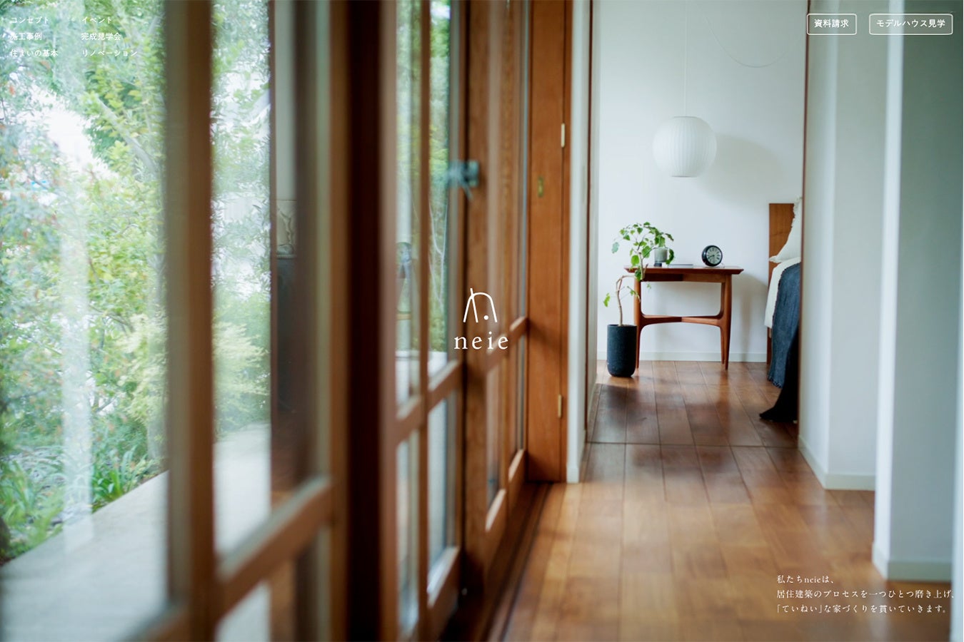 住まいの気配や光の揺らぎまで感じられる静かな佇まいを通して、neieが大切にしてきた「ていねいと暮らす」の在り方を訪れた人にそっと伝えるサイトです。