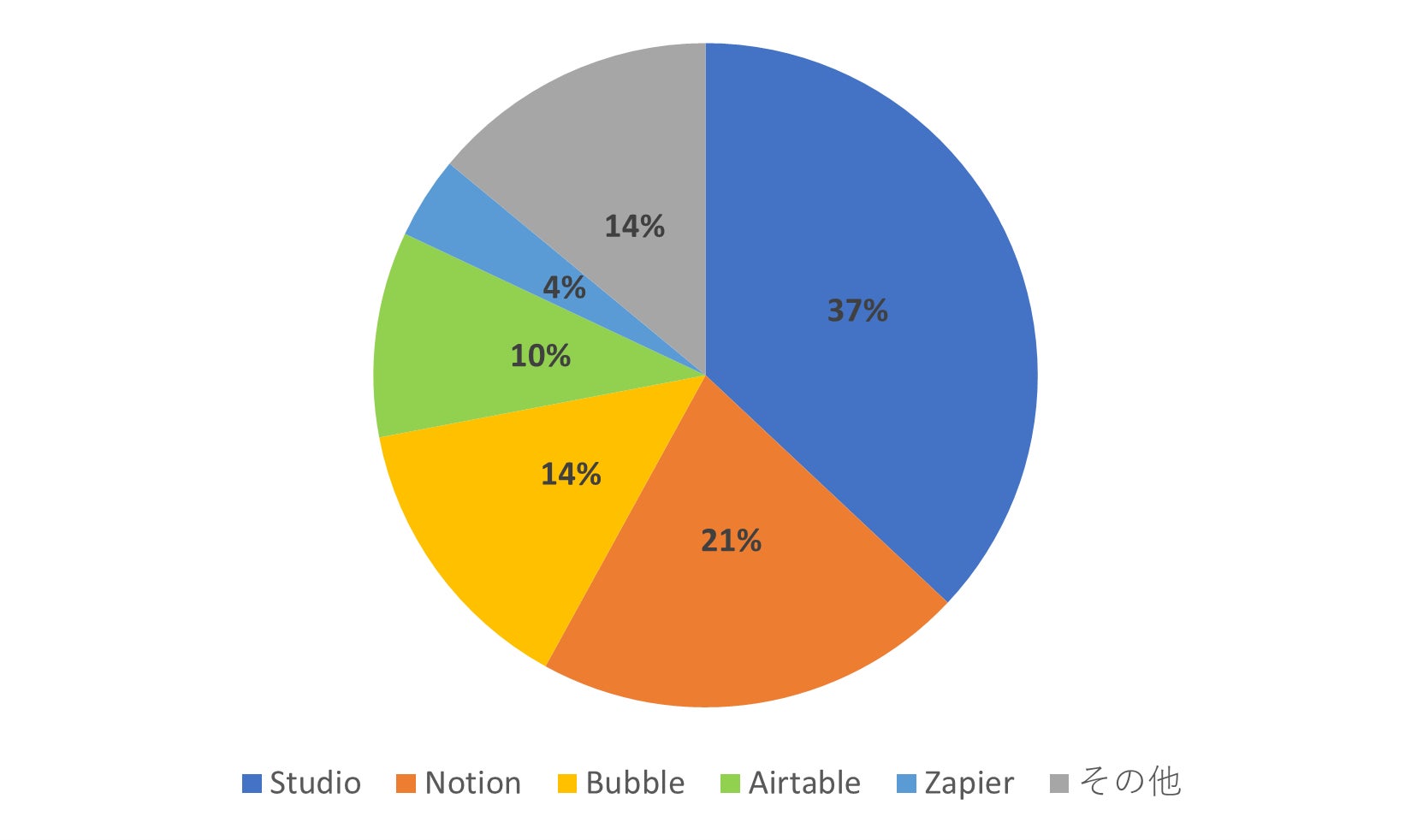 次いでNotion、Bubble、Airtable、Zapierの順に回答