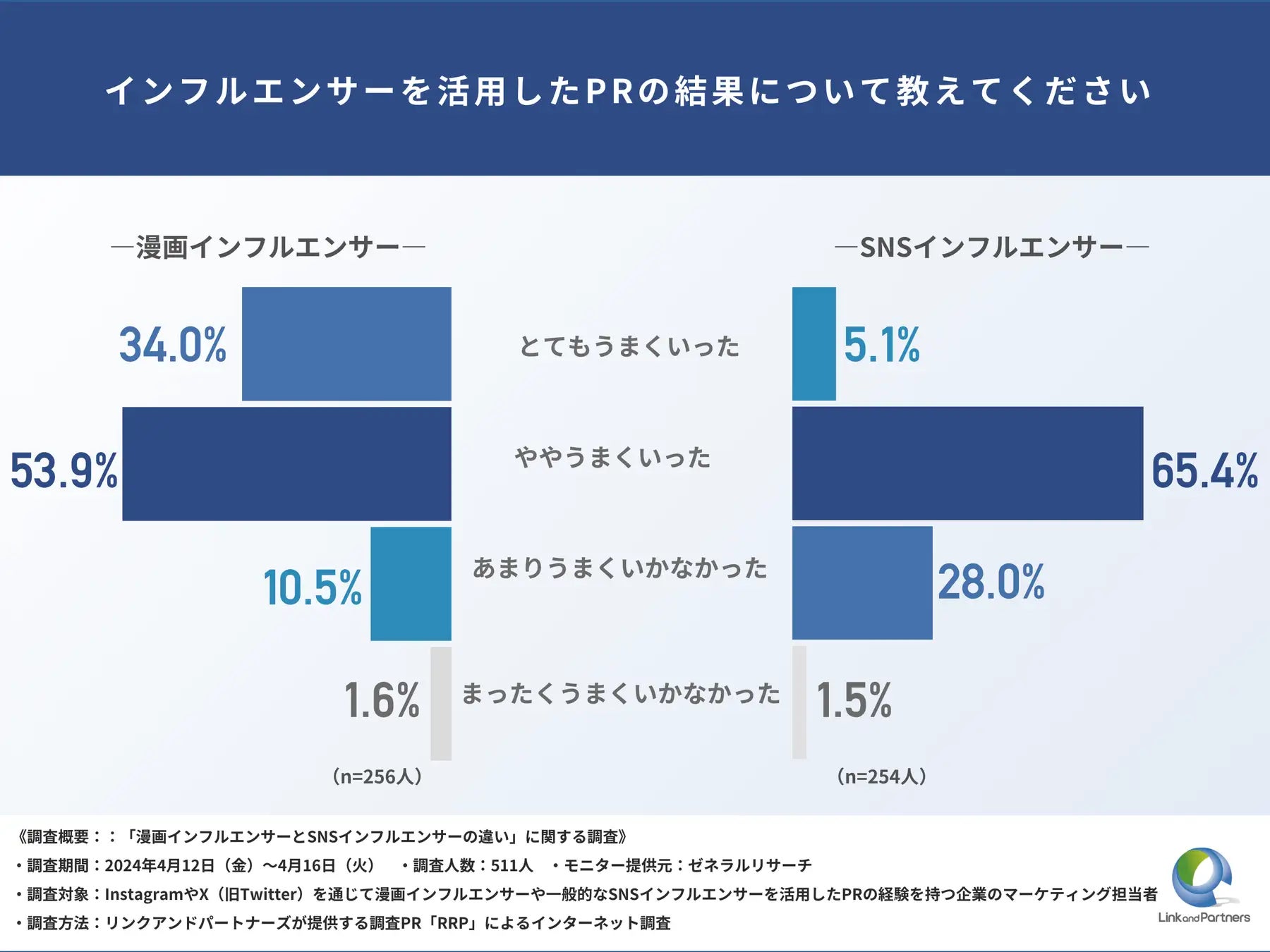 SNSインフルエンサーを活用したときより『うまくいった』と回答した方が多いという結果が出ています。