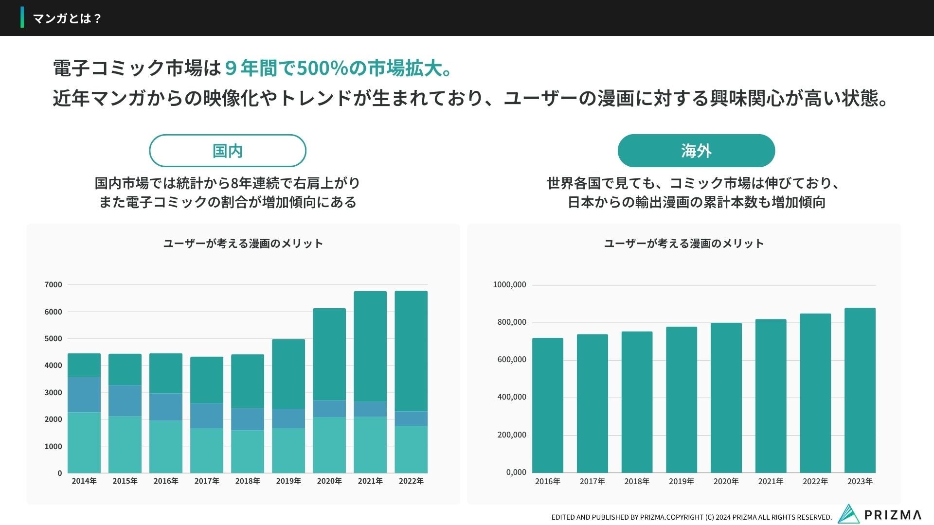 電子コミック市場は9年間で約500%の市場拡大をしていると言われ、