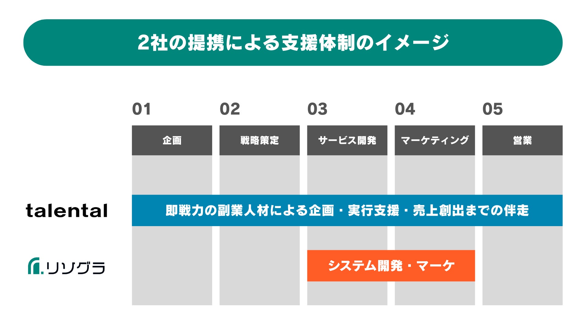 こうした課題認識に基づき、BizDev(事業開発)人材のレンタルサービスを提供するtalental株式会社は、福井県に本社を構え、システム開発やAI活用支援において豊富な実績を持つ株式会社リソグラと提携を行うことを決定しました。