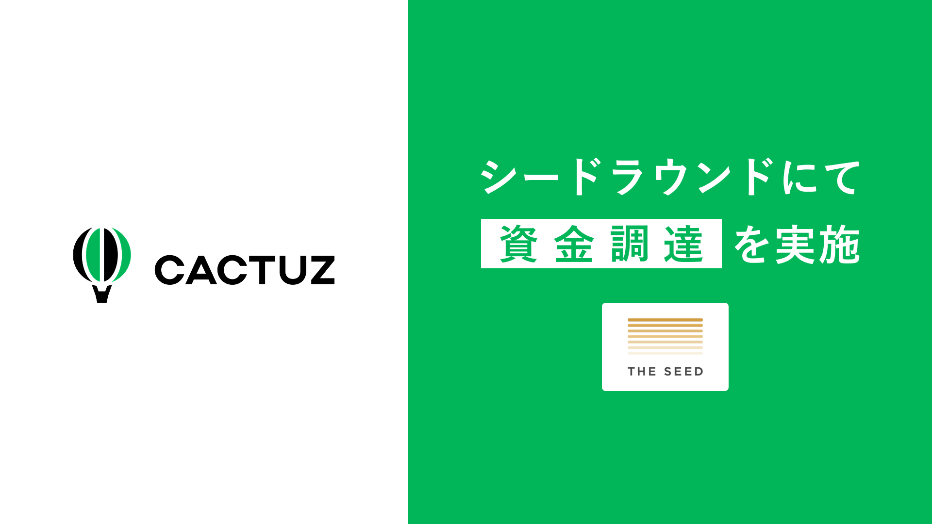 株式会社cactuz(カクタス)は、シードラウンドにおいて、ザシードキャピタル株式会社(代表取締役:廣澤太紀)を引受先とする第三者割当増資を実施したことをお知らせいたします。