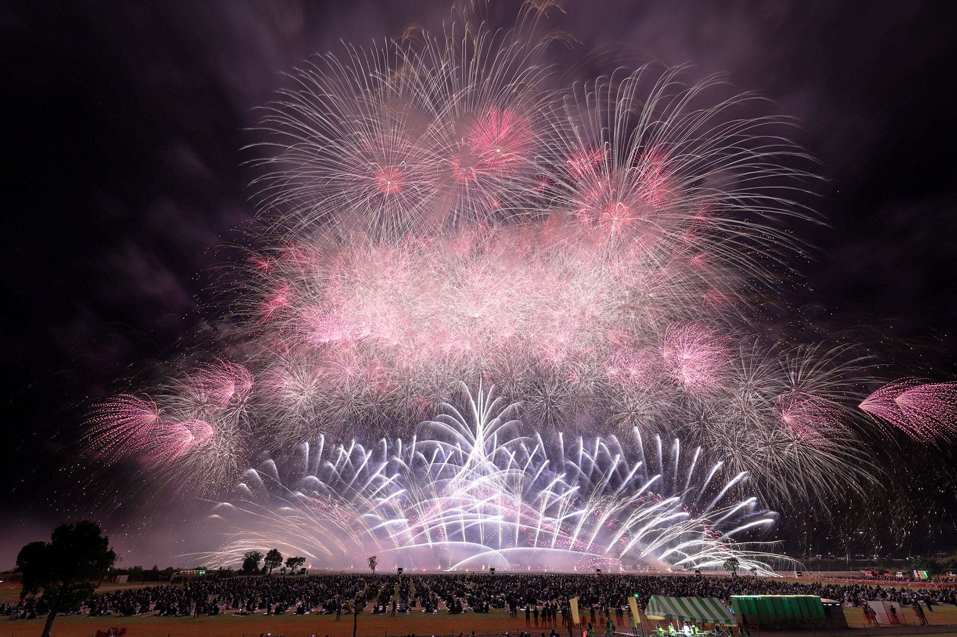 毎年約25万人の入場者数を誇る日本最大規模の花火イベントです。令和6年は10月19日㈯に開催されます。東北から九州まで全国の有名花火師30業者が競いあう競技部門やミュージック花火、余興花火などが堪能できます。観覧場所を取り囲むように多くの飲食店の出店があり、花火セミナーや物産展も開催される家族やカップルにおすすめの魅力的なイベントです。