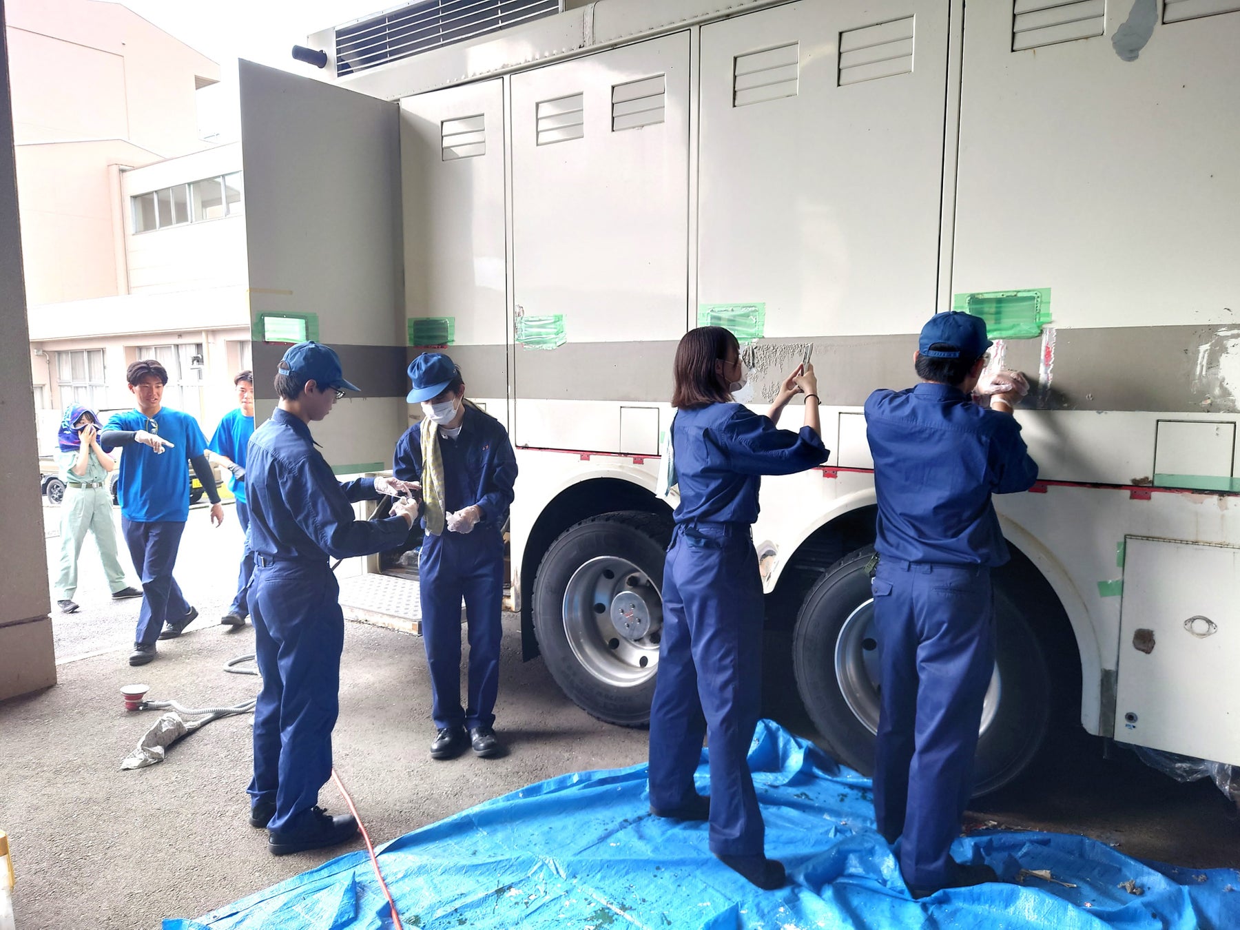 プロジェクトリーダー星野茂の母校である群馬県立太田工業高校で講演を行ったのを機に太田工業高校がキッチンカーの制作を授業の一環としてサポートしたいと表明、車両の傷んだ箇所の修理、塗装を行いました。未経験の生徒たちに群馬自動車大学校、京成自動車工業、関西ペイント、その他数十社の企業様より技術指導賜りました。