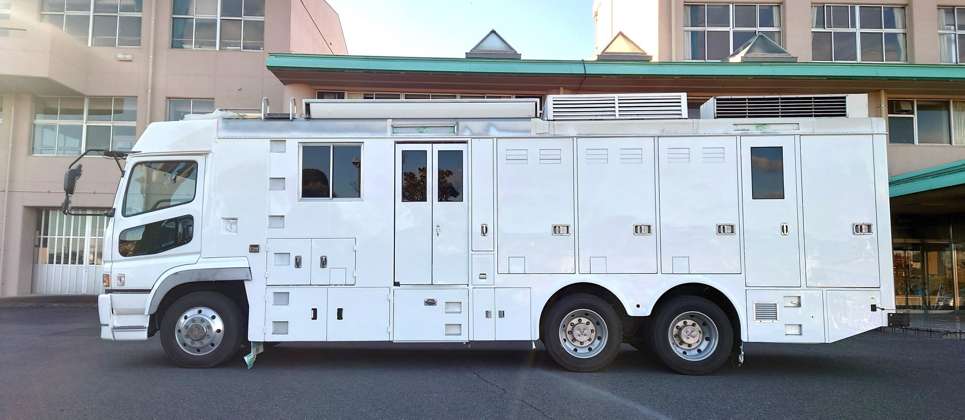 車両のコンセプトは今後起こりうる大災害を念頭に大規模避難所など数千人規模の避難所においても食事の提供が可能なこと、電力などのライフラインが寸断された場所でも活動できること、活動員が数日間現地に滞在できること、キッチンカーではあるが支援物資も十分積載できることを目標に大型中古中継車をベース車両とし製作スタートいたしました。当社では地元の小中学校へ学校給食(パン・ごはん)を供給しており、今回のプロジェクトでは大量調理のノウハウを生かしていきたいと考えております。