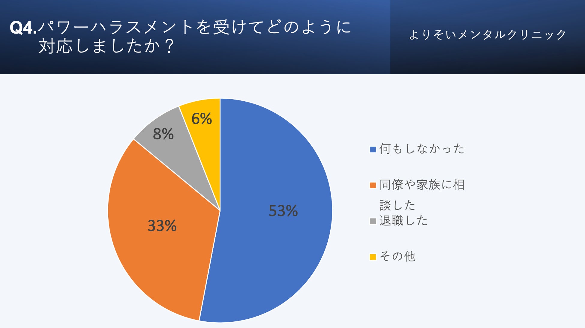 パワーハラスメントを受けた経験がある方に対して、どのような対応をしたのか調査しました。