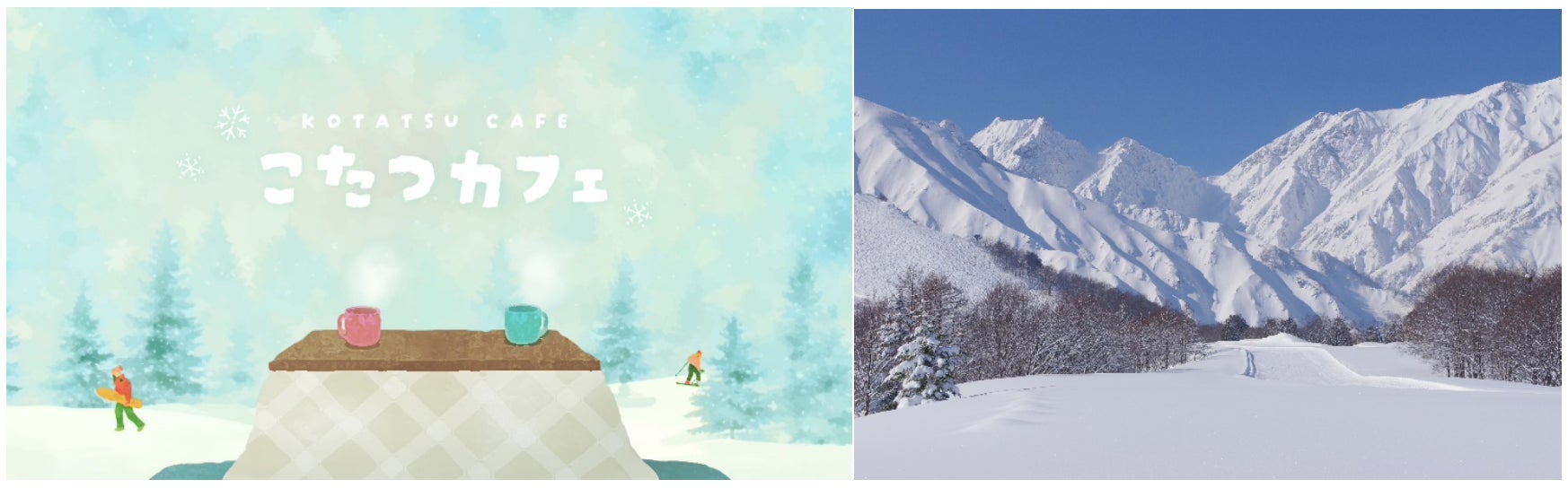 週末オープンの「八方こたつカフェ」では、日本の冬の絶景を伝統文化である“こたつ”に入りながらゆっくりとお楽しみ頂き、雪山の魅力を知っていただきたいと考えています。
