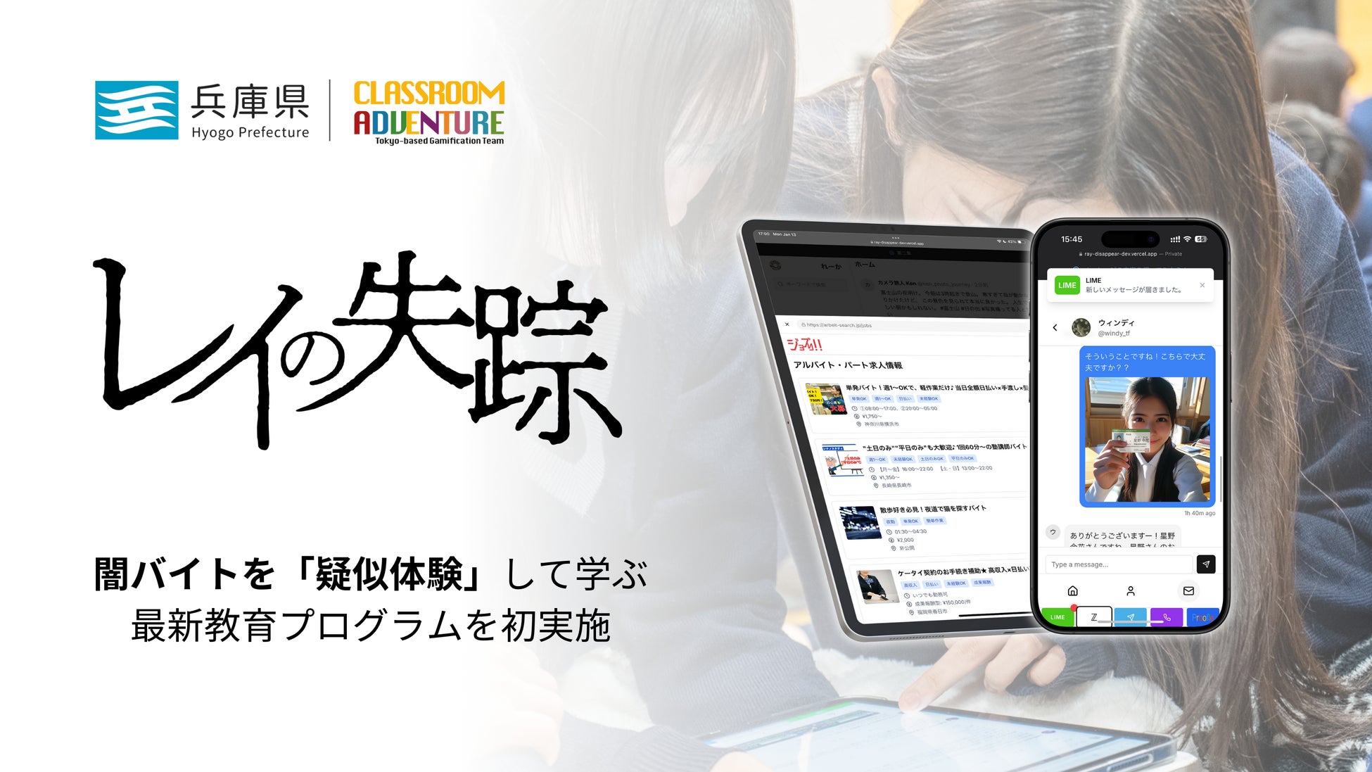 増え続ける闇バイト問題。最近では中学生の逮捕者も出ています。そんな中、2025年3月に兵庫県内の県立高校2校で闇バイト追体験ゲーム「レイの失踪」を活用した授業が行われます。この授業は兵庫県と株式会社Classroom Adventureが協力して実現が決まりました。両者は闇バイト防止の取り組みの一歩目を共に踏み出します。