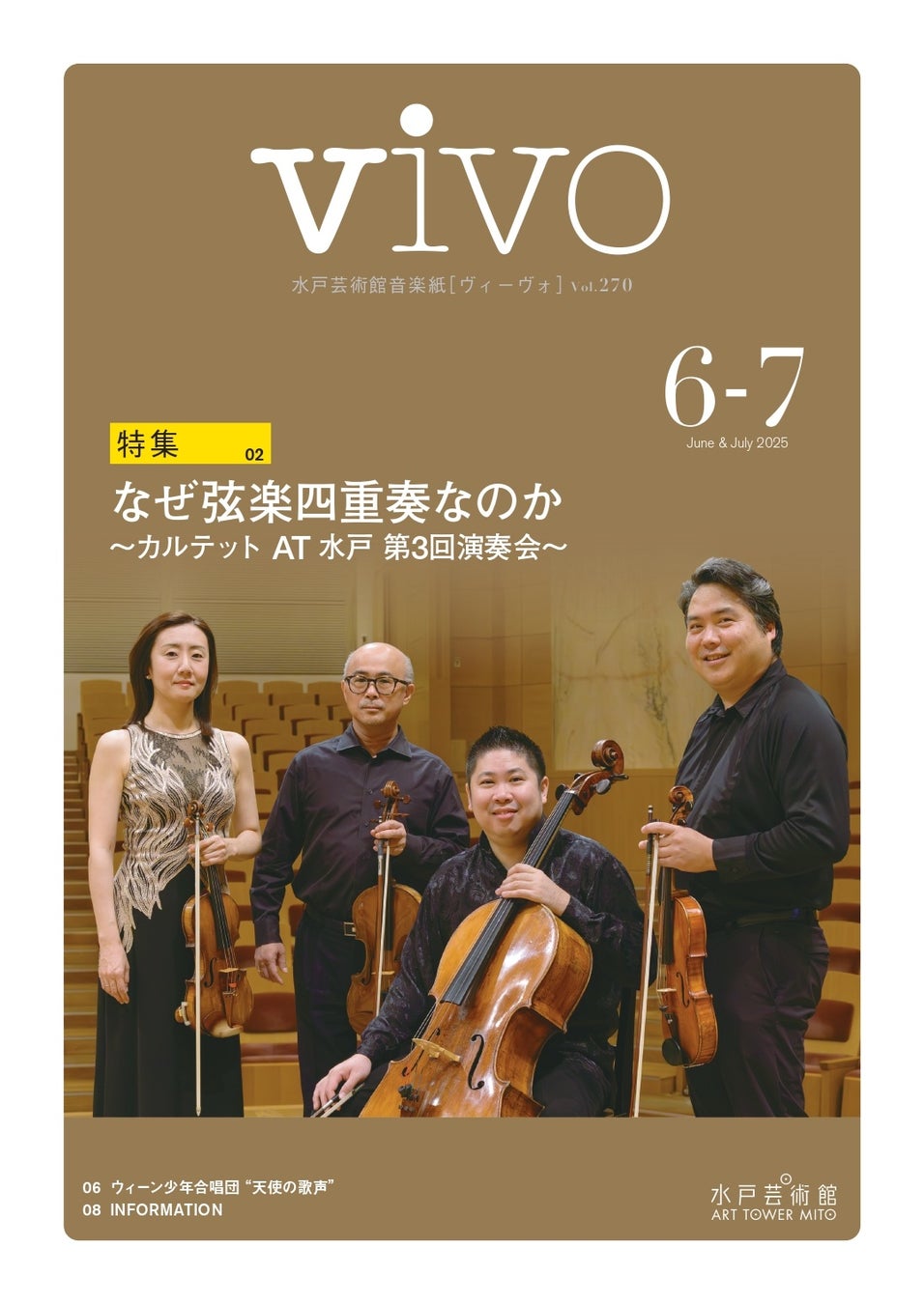 「カルテット AT(アット) 水戸」のインタビュー記事が掲載されている、音楽部門が制作の現場からお届けする音楽紙『vivo(ヴィーヴォ)』も是非併せてお読みください。