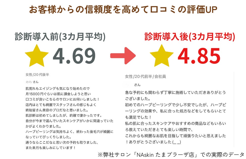 的確な肌診断とアドバイスが信頼を生み、SNSやレビューでの高評価にもつながります。