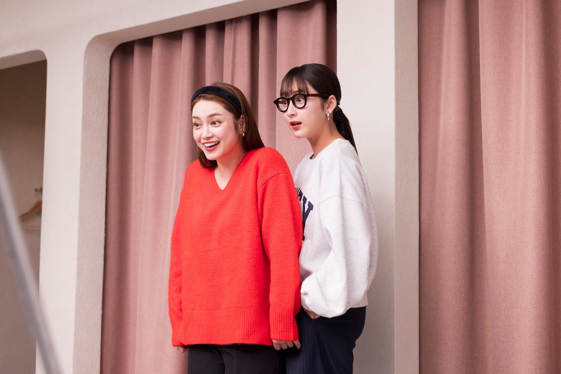 上品で鮮やかな赤いニットとゴールドのアクセサリーをアクセントにした上品なコーデの平愛梨さんと、スタイリッシュなメガネをかけ、遊び心のあるオーバーサイズのスウェットを可愛く着こなす大人カジュアルコーデの平祐奈さんが姉妹仲良く現場入り。スタッフ全員に元気よく挨拶し、お互いを「アイちゃん」、「ユウちゃん」と呼び合い、和やかな雰囲気の中で撮影がスタート。新CMのメインでもあるコーディネート対決の撮影では、「普段通りの自然な姉妹のやり取りをCMでも表現したい」という監督の考えから、台本なしでお二人のアドリブでの演技となりました。姉妹ならではの自然なやり取りで、お互いに自分のコーディネートの良さを主張した“コーディネート対決”を披露しました。明るい雰囲気で撮影が進む中、愛梨さんが天然ぶりを発揮し、コーディネート対決中には、突如チューチュートレインがスタート。このアドリブには、カットが入る前から現場で笑いが起こり、監督も予想外のアドリブに「面白い!いただきました!」の一言。お二人の仲睦まじさが垣間見える素敵なシーンとなりました。