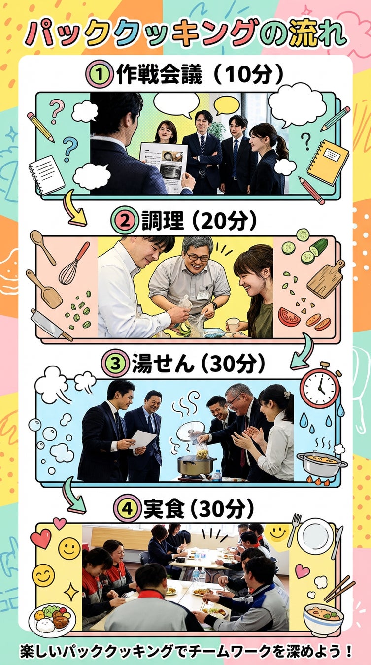 一般社団法人パッククッキング協会ジャパン(所在地:香川県高松市、代表理事:池田奈央)は、2026年3月5日(木)より、パッククッキングを活用した法人・団体向け「チームビルディング研修」の提供を開始いたします。 災害時の調理法として知られるパッククッキングを、日常のコミュニケーション活性化や組織力強化に応用。ポリ袋を活用した独自の調理工程と「デジタルデバイス禁止」の特別ルールにより、役職の垣根を超えた深い相互理解と現場対応力を養います。