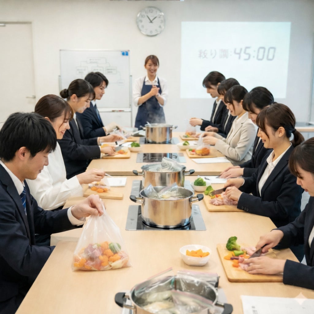 現代のビジネス現場において、情報のデジタル化が進む一方で「対面での正確な情報伝達」や「チームの足並みを揃える意識」の重要性が再認識されています。 当協会では、スキル差が出にくい調理法「パッククッキング」を活用し、「共創の力と情報伝達の精度を高める調理ゲーム」として再定義。チーム内のコミュニケーション能力と役割遂行能力を劇的に向上させる研修プログラムを開発いたしました 。