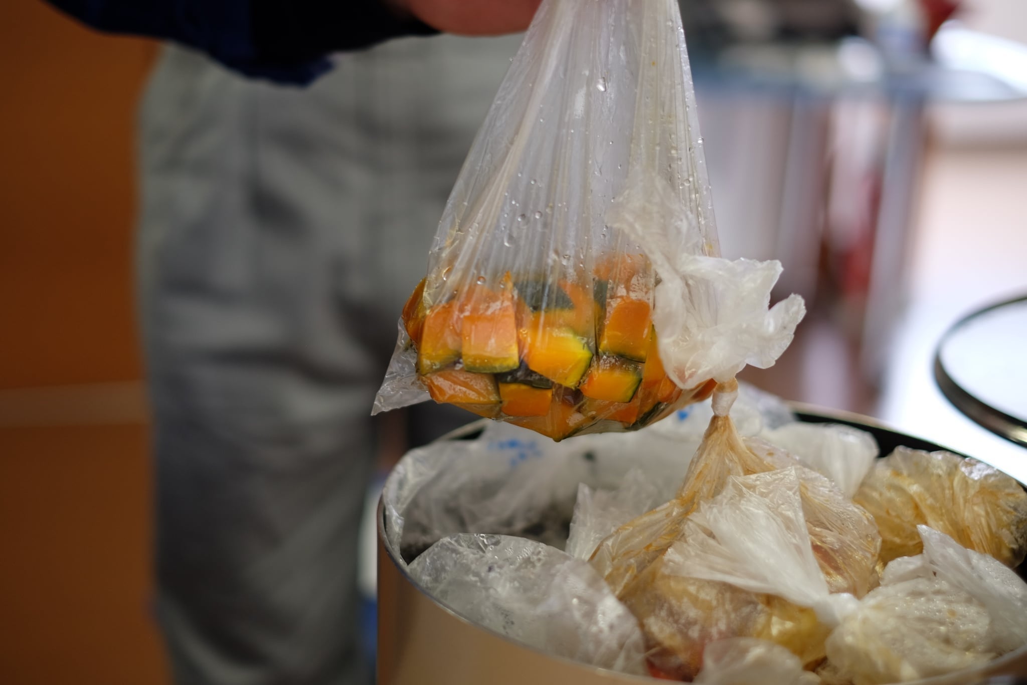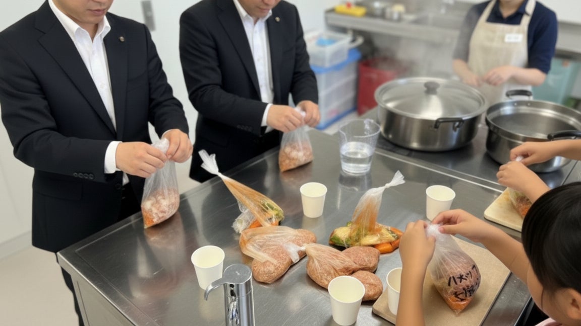 本研修は、ポリ袋に食材を入れて湯煎で加熱する「パッククッキング」を用いた体験型研修です。