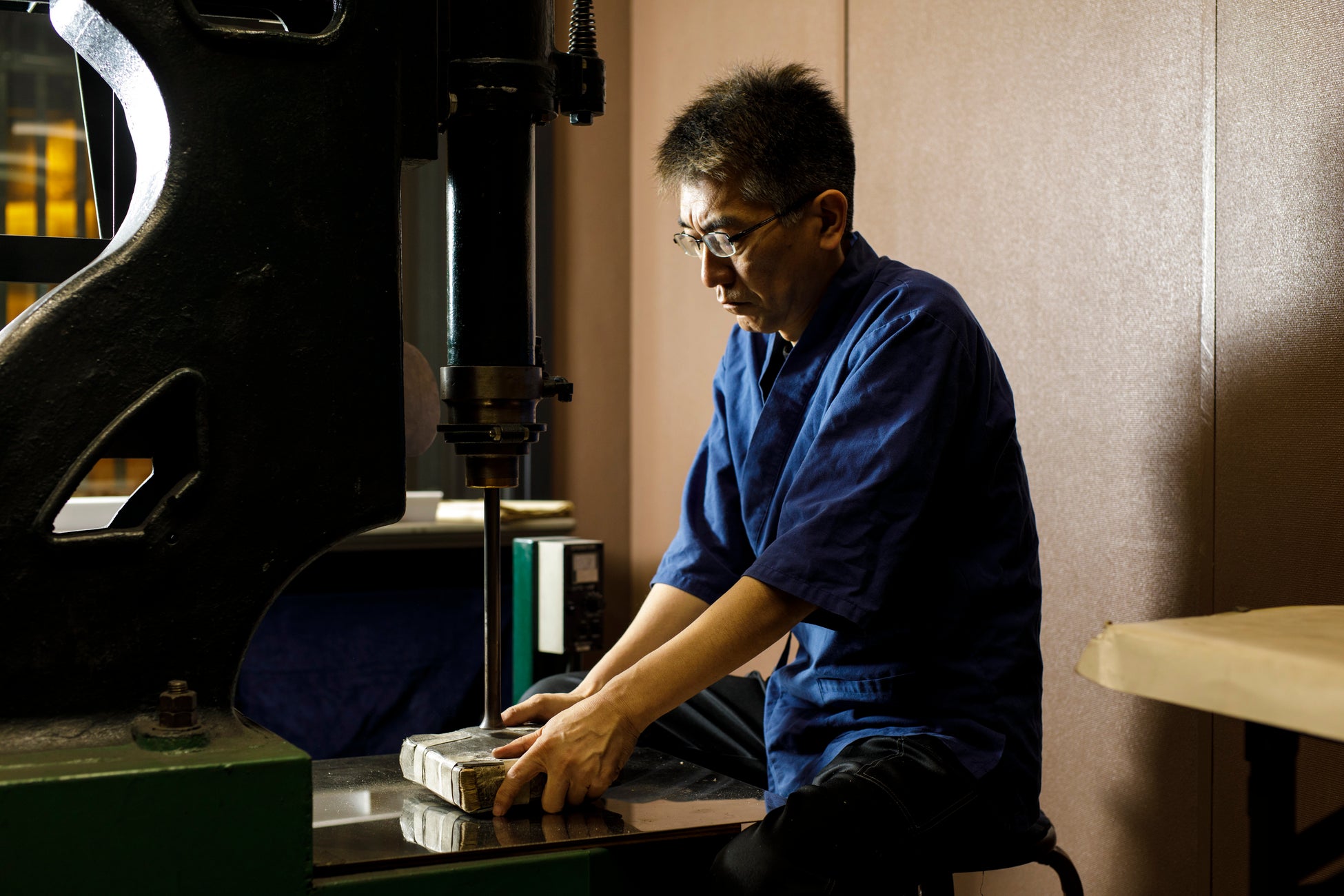 職人の様子を間近に見学し、金箔製造の奥深さを知る