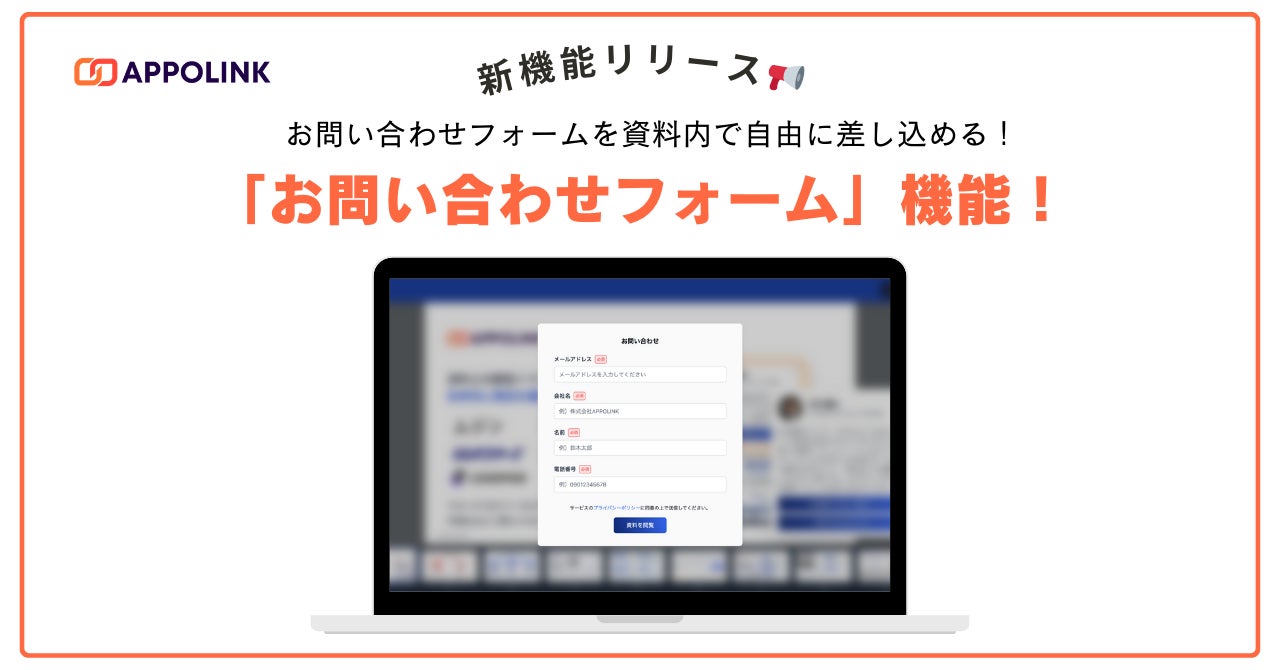 【新機能】お問い合わせフォームを資料内で自由に差し込める!リンク一つでアポが取れる「APPOLINK(アポリンク)」