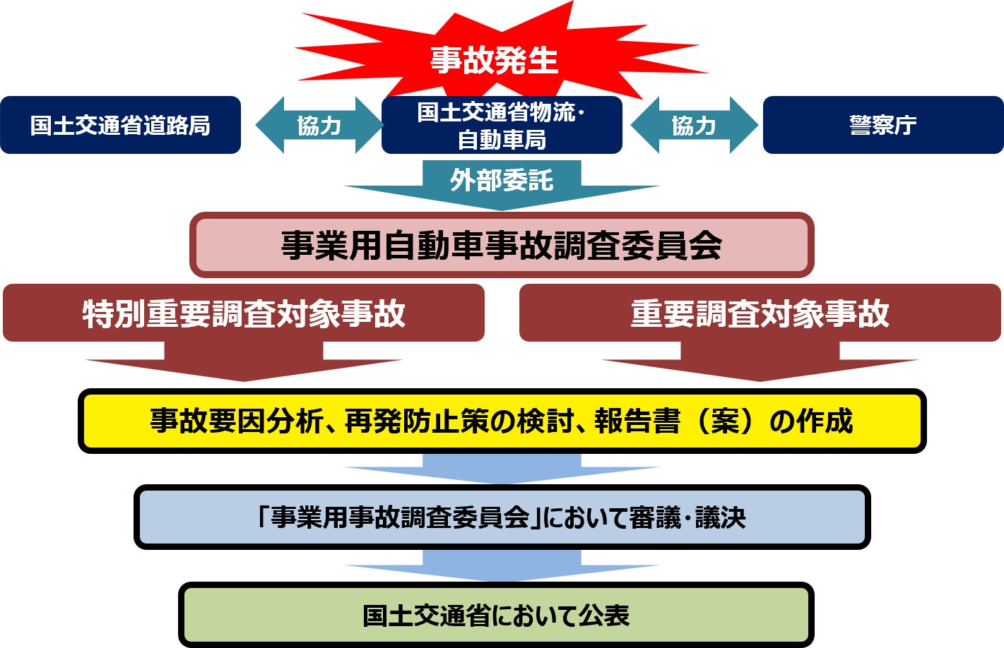 国土交通省は平成26年(2014年)6月、 (公財)交通事故総合分析センターを事務局として、各分野の専門家から構成される「事業用自動車事故調査委員会」を設置し、事業用自動車の重大事故について事故要因の調査分析を行っている。