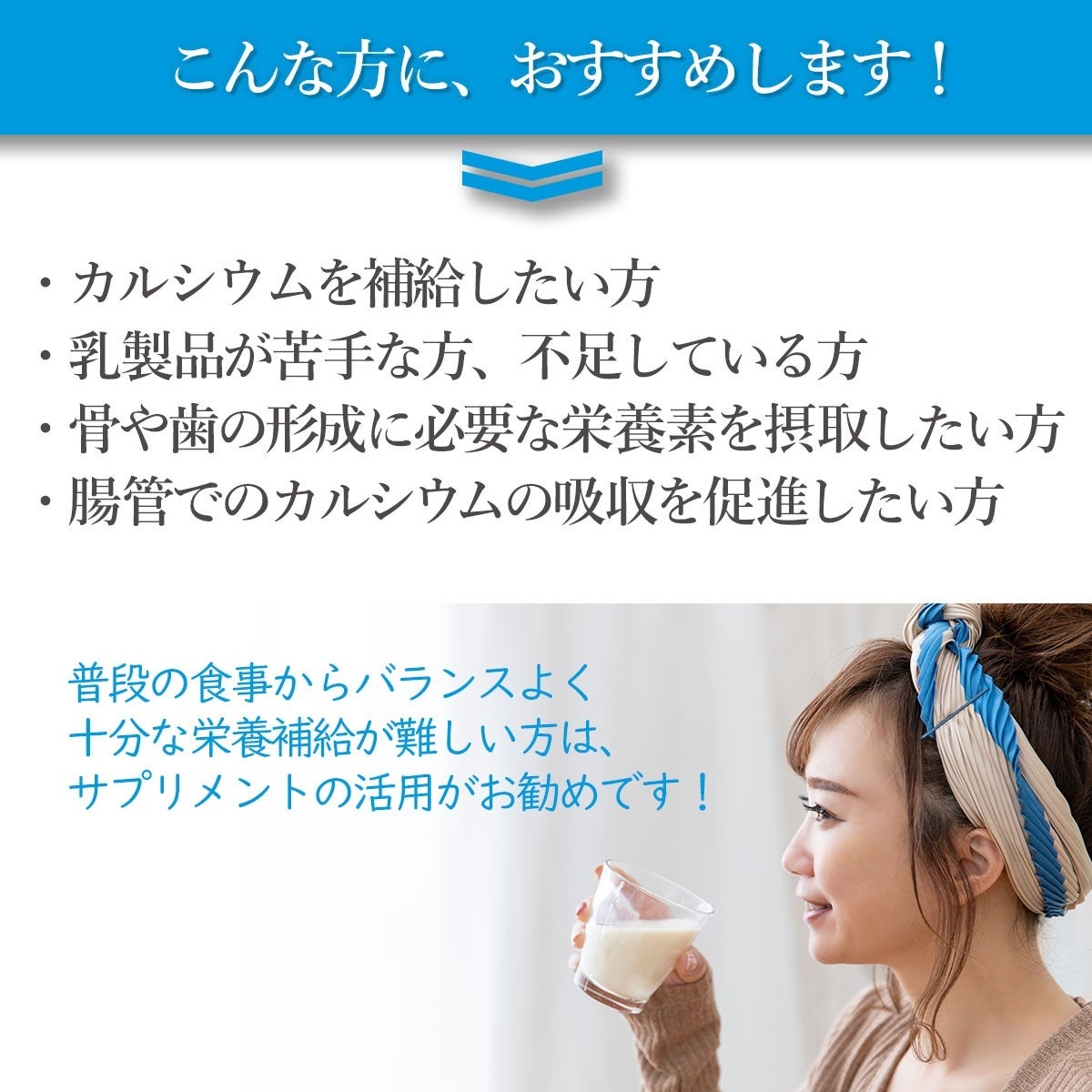 本リニューアルでは、カルシウムの配合量を従来の320mgから400mgに、マグネシウムは160mgから200mgに増量※2。加えて、さらに、腸管でのカルシウム吸収を促進するビタミンD※3や、ミネラルと相性が良く日々のエネルギーにも欠かせないクエン酸も配合し、多忙な現代人や乳製品が苦手な方・控えている方、中高年の健康維持まで幅広くサポートします。価格は据え置きとし、必要な栄養素をより効率的に補給できる設計に生まれ変わりました。