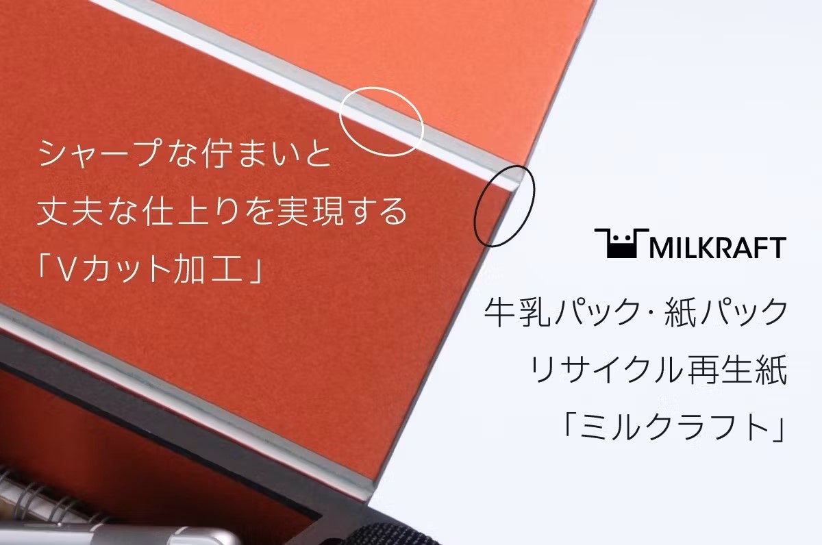 この「PAPER FOR PAPER」の各製品は、牛乳パック・紙パックのリサイクル再生紙「ミルクラフト®」を芯材に使用し「Vカットボックス加工」という特殊製法で出来ています。サステナブルなだけではありません、しっかりとした強度をもち、適度に軽い、優れた紙素材です。