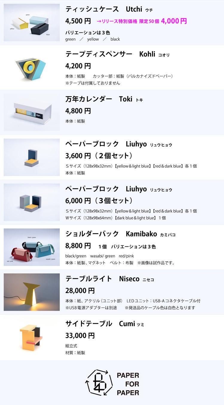 リターン品:「PAPER FOR PAPER」シリーズの各製品