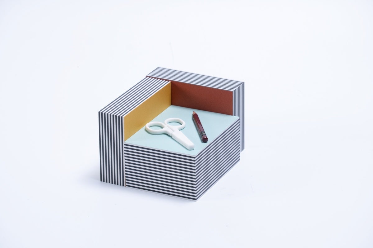 しっかりと丈夫な「Vカットボックス」という紙箱の特殊製法を活かし、紙箱メーカーとプロダクトデザイナーがタッグを組んで、インテリア・ファッション雑貨やステーショナリー雑貨を開発しました。