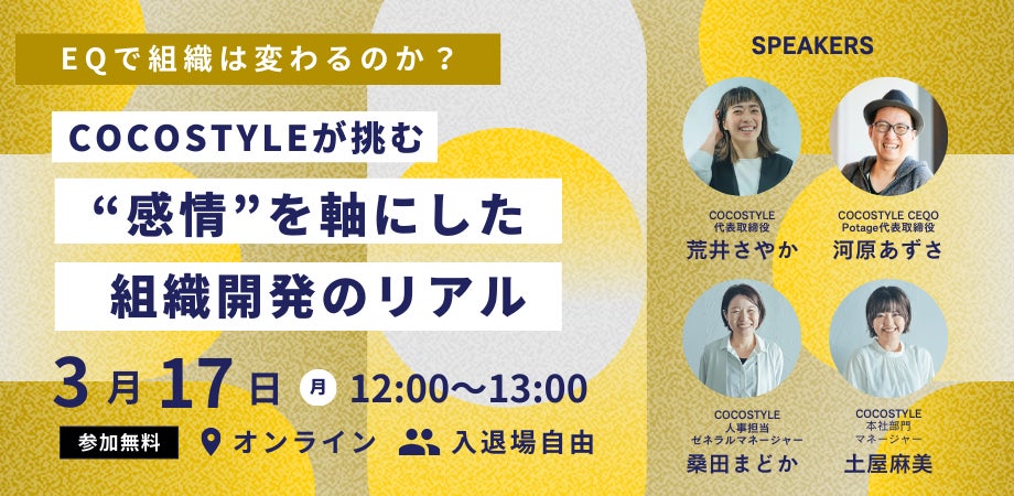 EQで組織は変わるのか?COCOSTYLEが挑む“感情”を軸にした組織開発のリアル【3月17日(月)12:00〜13:00】ウェビナー開催~ 組織の力を引き出す鍵は、「感情」にあった ~