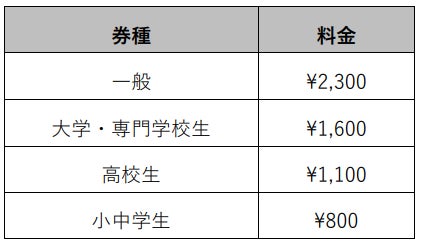 *未就学児のお子様は無料、保護者(中学生以上)の同伴が必要
