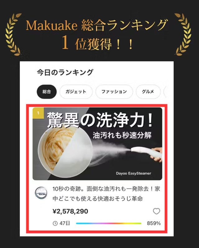 Makuakeでも販売開始すぐに総合ランキング1位に輝き、初日で達成率900%を達成し話題沸騰しました!!