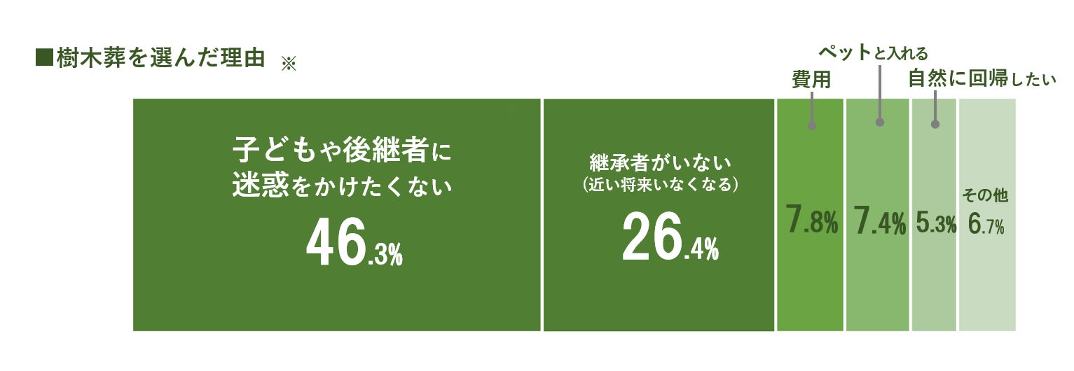 同調査では、樹木葬を選ぶ理由として「子どもや家族に負担をかけたくない」という回答が最も多くなりました。一方で近年は、一定期間でも個別に供養できるお墓を選びたいと考える人が、前回調査より増加していることが分かっています。