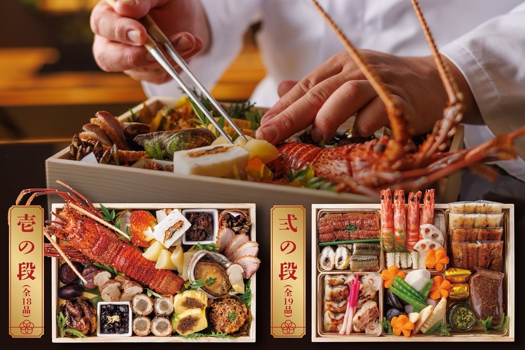 新年を彩る、職人手づくりの極上おせち|伊勢海老や黒毛和牛を使用したローストビーフに加え、しろむらならでは三河一色産活うなぎを使用した長焼き、八幡巻きなど"伝統と革新"が融合した特製二段重のおせちです。