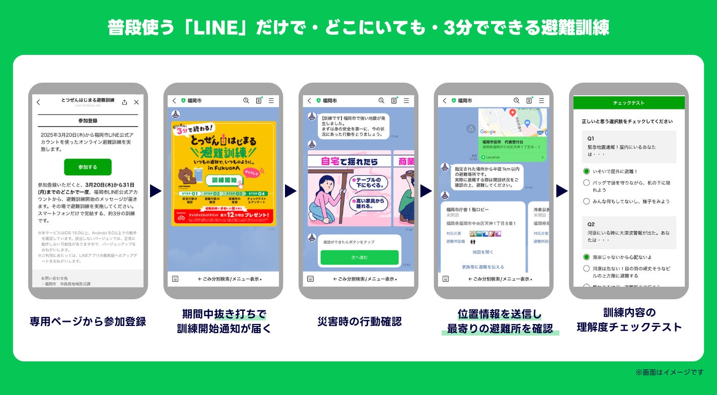 LINEヤフーコミュニケーションズと福岡市、「LINE」だけで・どこにいても・3分でできる避難訓練を市民防災の日に合わせて共働実施