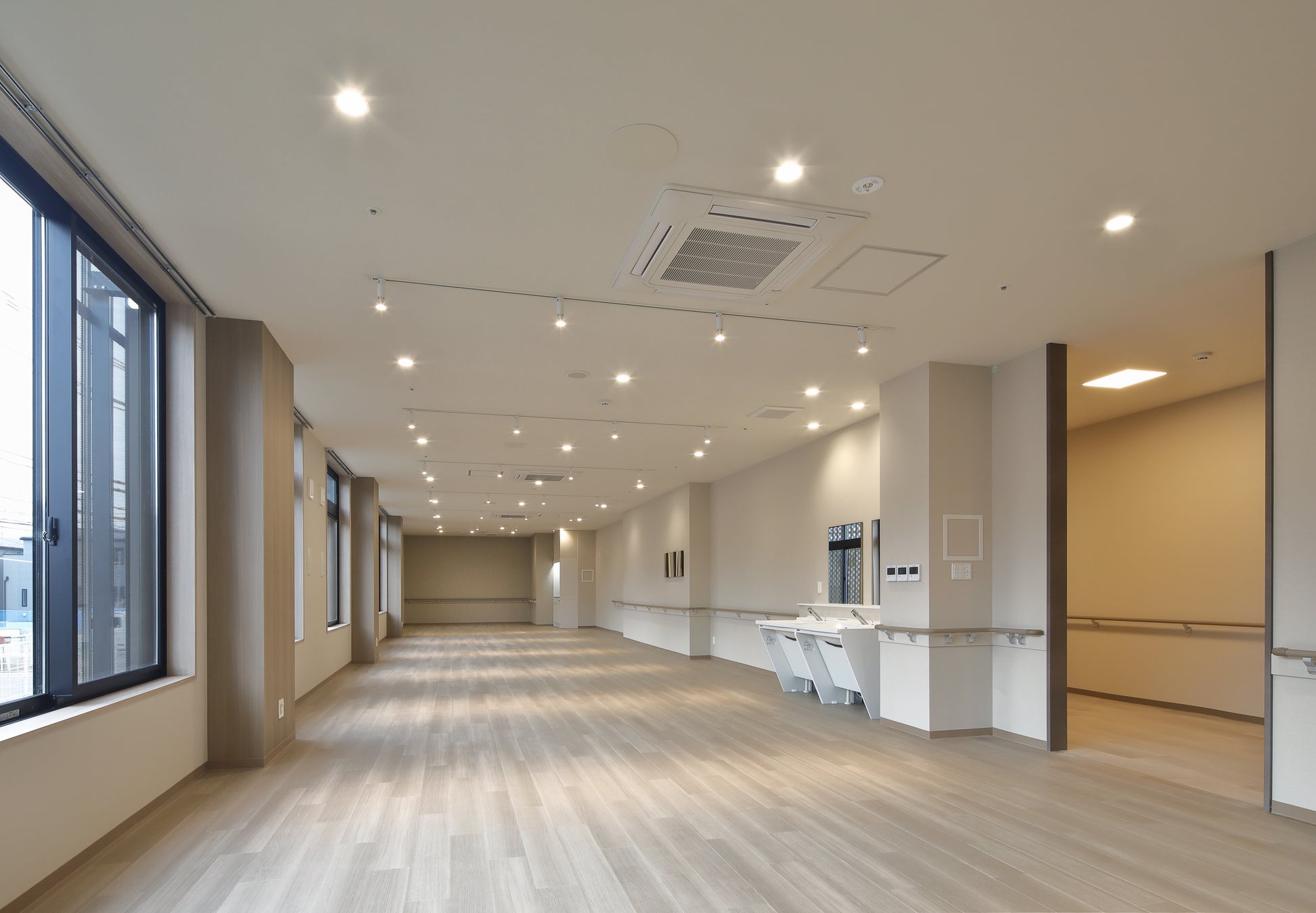 館内は全てバリアフリー対応で足が不自由な方、車いすで移動される方も安心安全でご利用いただけます。広々とした開放的な空間には日の光が差し込み、ご利用者様の気持ちも明るくなります。