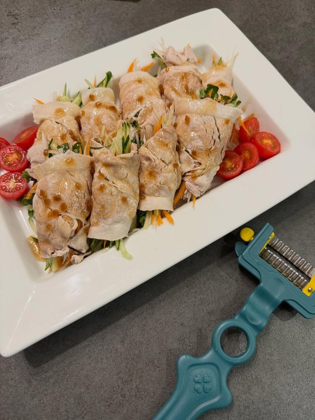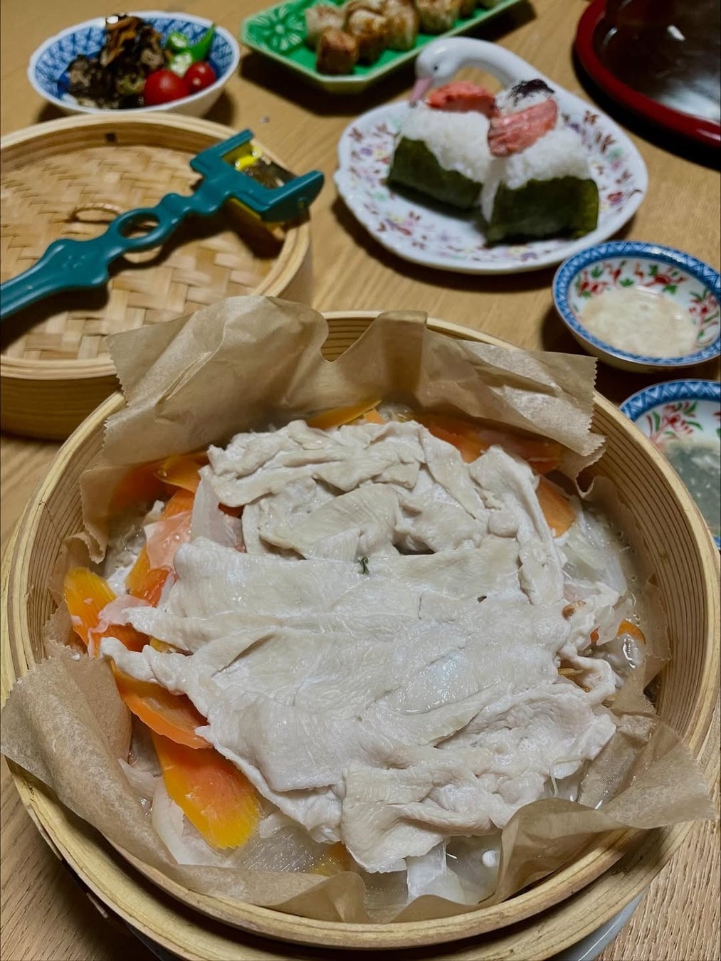 「豚しゃぶの野菜巻き」 「野菜たっぷりサラダピザ」 「胸肉と野菜の蒸篭蒸し」