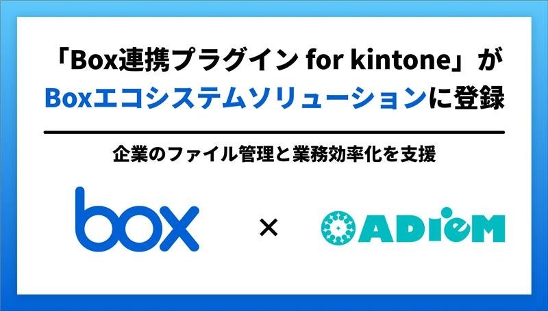 アディエム「Box連携プラグイン for kintone」がBoxエコシステムソリューションに登録~kintoneとBoxのシームレスな連携により、企業のファイル管理と業務効率化を支援~