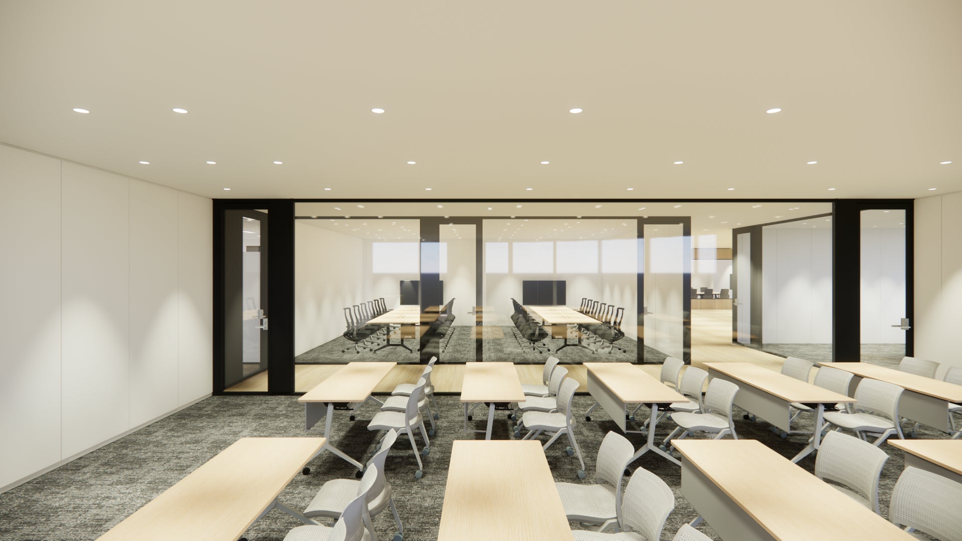 社内研修や技術勉強会などに活用できる大型研修スペースを設置しました。組織を超えた知識共有の場として、データサイエンティストの継続的な学びと成長を支援します。