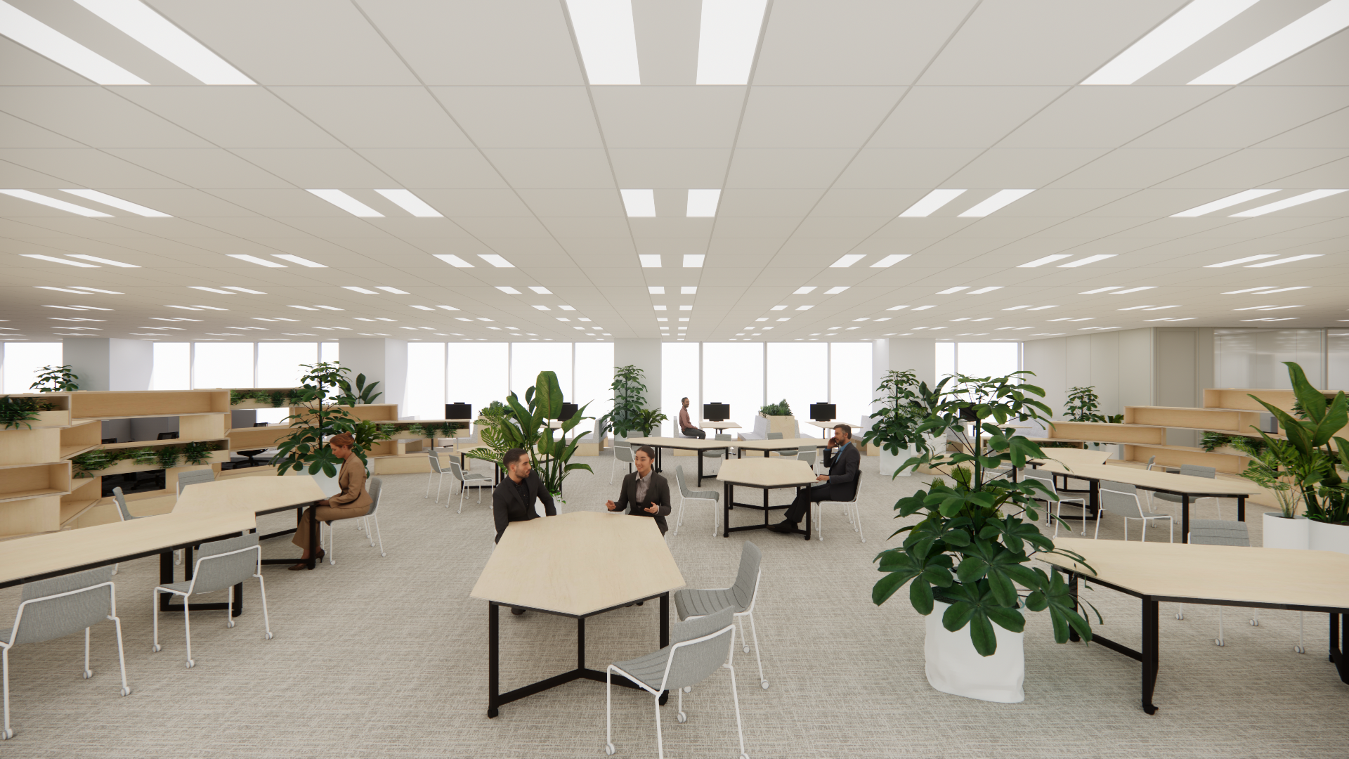 会議を原則禁止とするエリアを新設し、深い思考を要する業務に最適な静かな環境を整備しました。