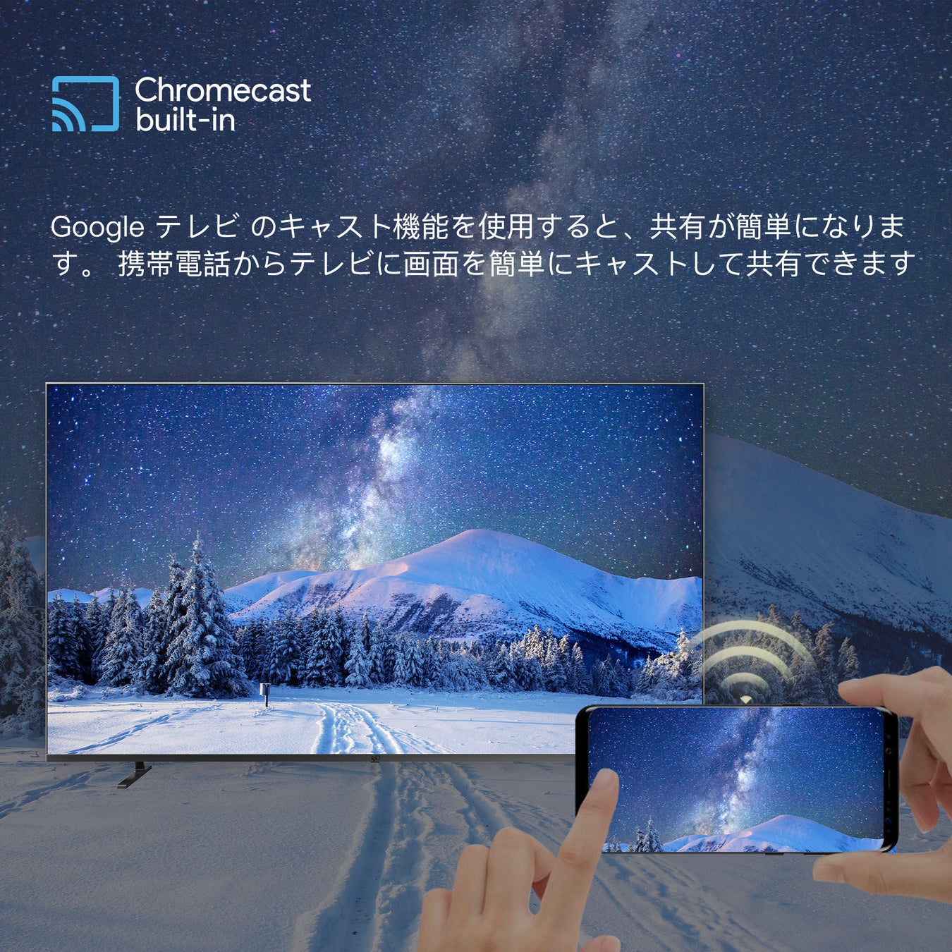 Chromecast内蔵でスマホやタブレットから映像を簡単にキャストできます。