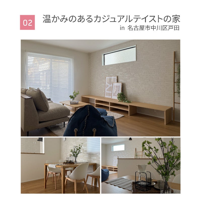 家の中心となるリビングは自然光をふんだんに取り込み、アクセントクロスでメリハリをつけた開放感のあるスペースに仕上げています。オプション設備を最小限に抑えながらも、住みやすさとデザイン性を両立したインテリアプランは実際に住んだ時のイメージをしやすいよう家具などを設置しています。