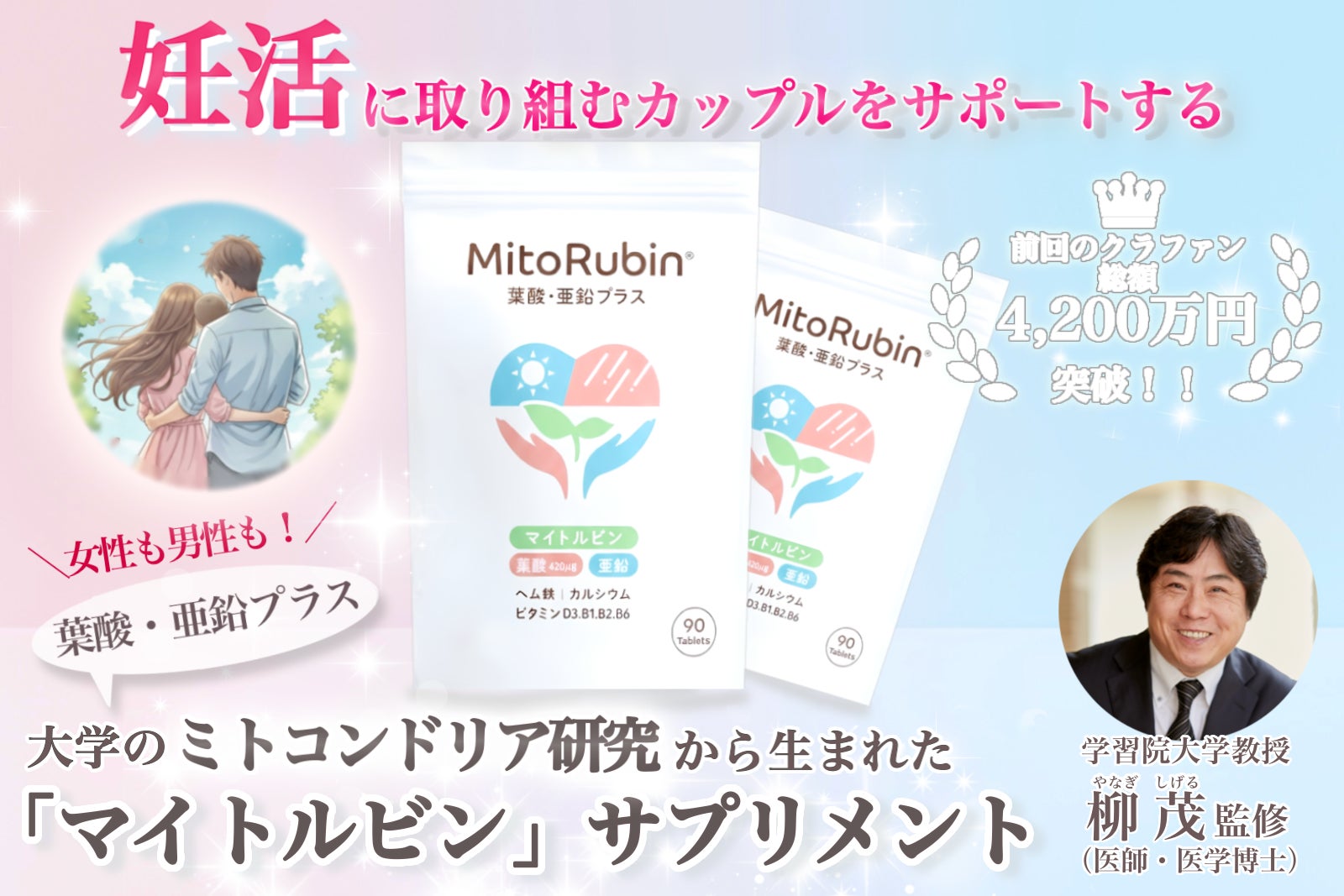 また現在、ライフステージに応じた製品開発の一貫として、妊活期の栄養サポートに着目した「MitoRubinサプリメント 葉酸・亜鉛プラス」の先行販売クラウドファンディングを実施しています。