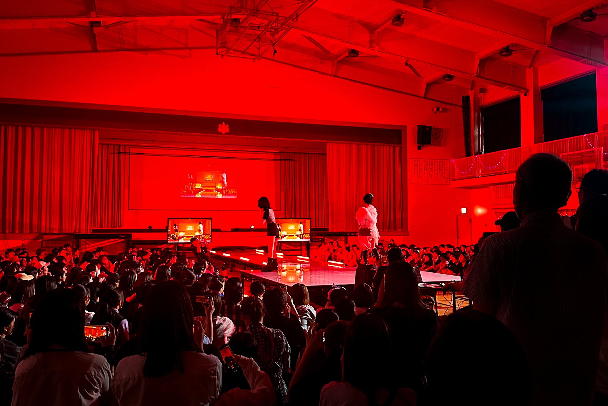 このファッションショーは、学校の「ふじらぼ土曜講座」と連動したキャリア教育プログラムの一環として、半年間にわたり生徒たちが構想を練り上げ、衣装・ヘアメイク・舞台演出をトータルにプロデュースしたものです。